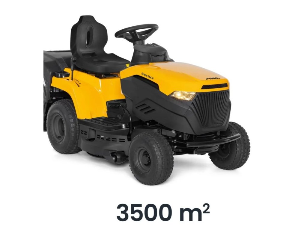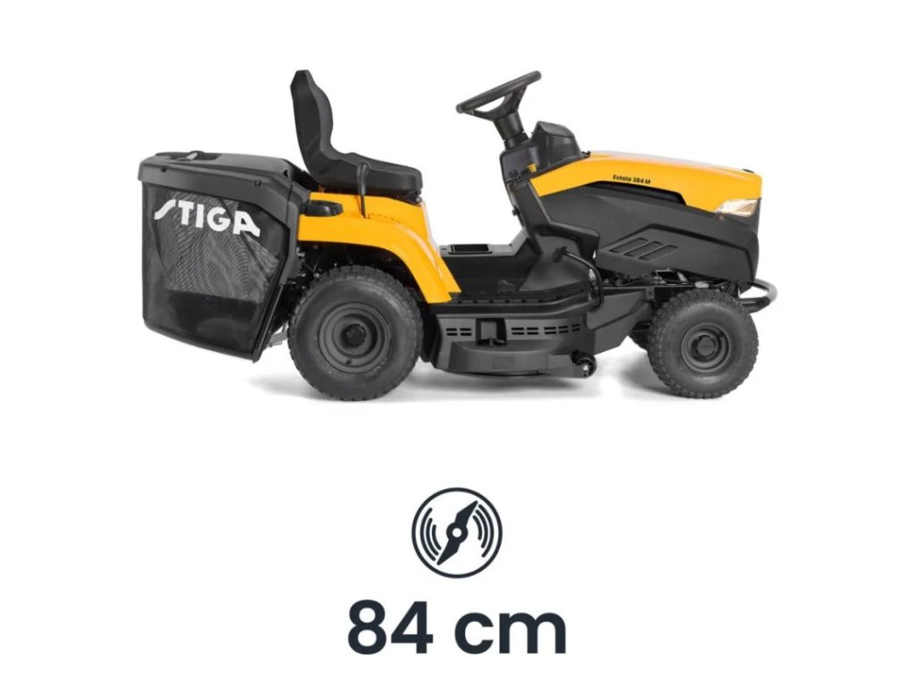 Zahradní traktor STIGA Estate 384 M je vybavena benzínovým motorem ST 350 Powered by STIGA s čistým výkonem 5,8 kW při 2 400 ot/min. Stroj je vybaven mechanickou převodovkou s 5 rychlostmi v před a 1 vzad. Žací ústrojí o šířce 84 cm má dva nože a 7 poloh nastavení výšky střihu od 25 do 80 mm. Dále je vybaven praktickým systémem elektromagnetické spojky nože, který je ovládán tlačítkem. Model Estate 384 M využívá zadní sběrný koš na trávu o objemu 200 litrů a umožňuje také použití funkce STIGA Multiclip pro mulčování. Volant s měkkým potahem a polstrovaná sedačka s opěrkami rukou poskytuje pohodlné řízení. Estate 384 M lze také použít k mulčování posečené trávy pomocí zástrčky STIGA Multiclip, která se prodává samostatně. Nabíječka baterií a mulčovací kit STIGA se prodávají samostatně.