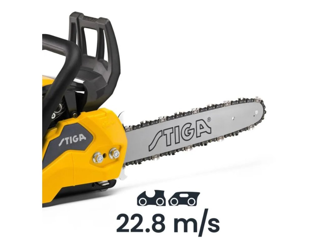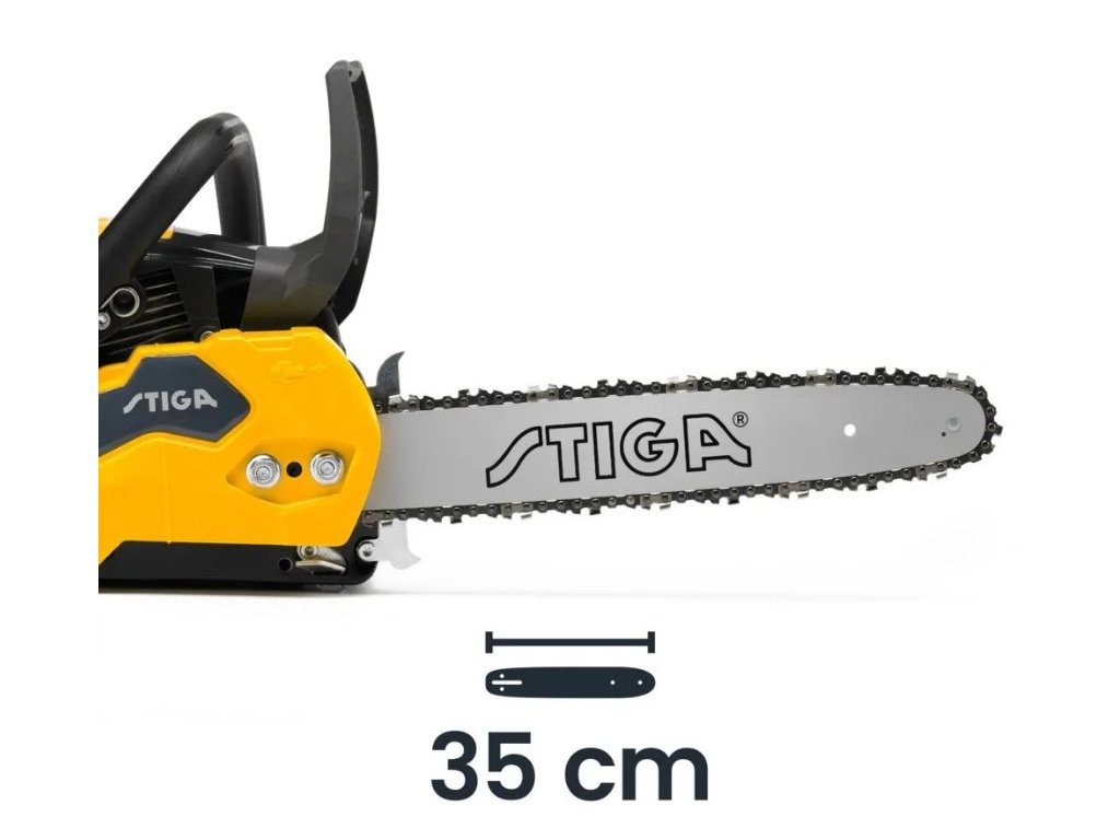 Řetězová pila STIGA CS 540 (14") s 35 cm lištou je poháněna motorem o objemu 38,5 ccm (1,6 kW), díky čemuž je spolehlivá a výkonná a přitom lehká. Hořčíkový kryt motoru zajišťuje robustnost, spolehlivost a rychlé chlazení. Olejové čerpadlo je automatické i nastavitelné. Údržbu lze provádět rychle a snadno díky řadě funkcí; jako je zámek na krytu vzduchového filtru k demontáži není potřeby dalšího nářadí, napínací klíč umístěný pod zadní rukojetí a okénko sledování hladiny paliva v nádrži. Ergonomická měkká rukojeť a pružinový systém zajišťují snížení vibrací a větší pohodlí.