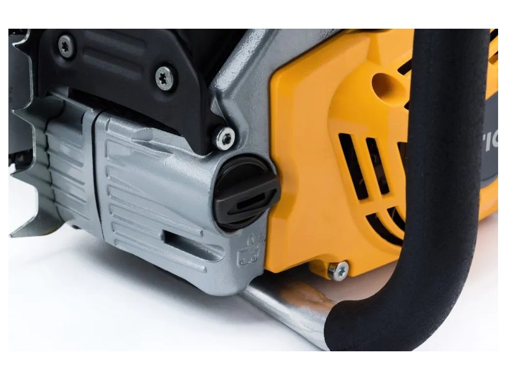 Manuální a setrvačná brzda řetězu umožňuje zastavit řetěz jednou rukou za 0,089 sekundy, což nabízí maximální bezpečnost v případě zpětného rázu.