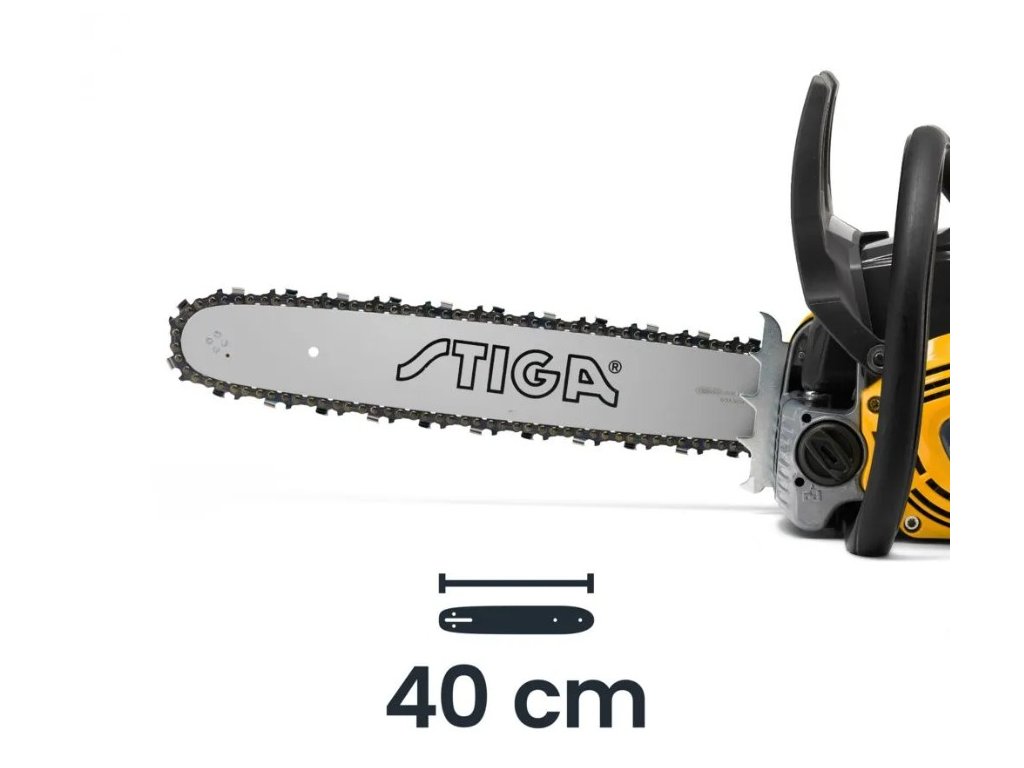 Řetězová pila STIGA CS 545 (16")s vodicí lištou o délce 40 cm je poháněna zážehovým motorem o obsahu 42,4 cm3 (1,9 kW), který přináší výkon a univerzálnost. Pila CS 545 (16")disponuje lištou o délce 40 cm (16") a hořčíkovým krytem motoru, který zajišťuje pevnost, nízkou hmotnost a rychlé chlazení. Napínací klíč máte na dosah ruky přímo pod rukojetí, a olejové čerpadlo je automatické a nastavitelné. Úkony údržby lze provádět rychle a snadno díky funkcím, stejně jako otevření krytu vzduchového filtru bez potřeby dalších nástrojů a monitorovací okénko hladiny nádrže. Ergonomická měkká rukojeť a pružinový systém zajišťují menší vibrace a vyšší pohodlí.