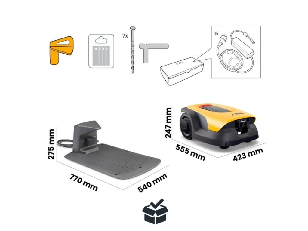 Robotická sekačka pro trávníky do 2 500 m² STIGA A 25v je výkonná robotická sekačka určená pro větší a členité zahrady až do 2 500 m². Díky bezdrátovému vymezení plochy, kameře s umělou inteligencí a vysokému výkonu zajišťuje rovnoměrně udržovaný trávník bez nutnosti instalace ohradního kabelu. Bezdrátové vymezení plochy – žádné kabely v zemi Nastavení sečení v aplikaci STIGA.GO Pracovní zóny, zakázané oblasti i okraje trávníku nastavíš digitálně v aplikaci STIGA.GO. Instalace je rychlá, čistá a bez zásahů do trávníku. Flexibilní řešení pro větší zahrady Bezdrátové vymezení umožňuje snadné úpravy při změnách dispozice zahrady, nových výsadbách nebo sezónních úpravách. Kamera s AI pro inteligentní navigaci Rozpoznání trávníku v reálném čase Integrovaná kamera s umělou inteligencí rozpoznává travnaté plochy, optimalizuje trasu sečení a zajišťuje přesnou práci i u okrajů a složitějších tvarů pozemků. Adaptivní LED osvětlení LED osvětlení se automaticky přizpůsobuje světelným podmínkám a zajišťuje bezpečný provoz i při zhoršené viditelnosti. Výkonný žací systém pro větší plochy Čtyři výkyvné nože Žací disk se čtyřmi výkyvnými noži zajišťuje čistý střih, rovnoměrné sečení a vysokou efektivitu na větších plochách. Elektronické nastavení výšky sečení Výšku sečení lze pohodlně nastavit v rozsahu 20–60 mm podle typu trávníku a požadovaného vzhledu. Zvládne svahy i členitý terén STIGA A 25v si poradí se svahy až do 45 %, takže je vhodná i pro zahrady s náročnějším profilem. Ovládání přes mobilní aplikaci (Bluetooth / 4G) Kompletní kontrola odkudkoliv plánování sečení správa více pracovních zón kontrola stavu sekačky upozornění a notifikace Dešťový senzor Při dešti sekačka automaticky přeruší práci a vrátí se do nabíjecí stanice. Automatický návrat a efektivní provoz Po dokončení sečení nebo při nízkém stavu baterie se STIGA A 25v automaticky vrátí do nabíjecí stanice. Výkonný akumulátor umožňuje dlouhou pracovní dobu a stabilní provoz po celou sezónu. Obsah balení Robotická sekačka STIGA A 25v Nabíjecí stanice Nabíjecí a instalační příslušenství Uživatelská dokumentace.