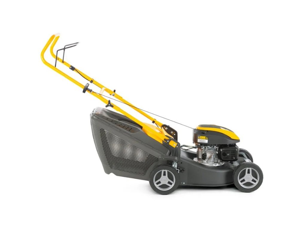 Nastavitelné a sklopné madlo s měkkým povrchem zajišťuje pohodlnou obsluhu a snadnou manévrovatelnost, zatímco 60l sběrný koš s indikátorem naplnění omezuje přerušování práce během sečení.