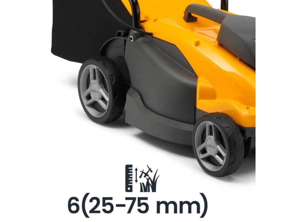 Elektrická sekačka bez pojezdu STIGA Combi 336c je kompaktní a váží pouhých 11 kg, takže je lehká a praktická. Tato obratná sekačka s pohodlným ovládáním je poháněna motorem o příkonu 1400 W a má centrální nastavení výšky střihu, kterou lze pomocí páky s ergonomickou rukojetí nastavit do šesti poloh v rozmezí od 25 mm do 75 mm. Sběrný koš na trávu o objemu 35 litrů má průhledové okénko a rukojeť pro snadné vyprazdňování. Sekačku Combi 336c lze používat také v režimu mulčování, což je funkce sekání, která posekanou trávu jemně rozdrtí a rozprostře po zemi jako hnojivo. Rukojeť s dvojitým ovládáním lze pomocí systému rychlého uvolnění složit a zmenšit tak nároky na úložný prostor, když se stroj nepoužívá. Praktická madlo na horní straně sekačky usnadňuje její přemisťování. Mulčovací vložka je součástí balení.
