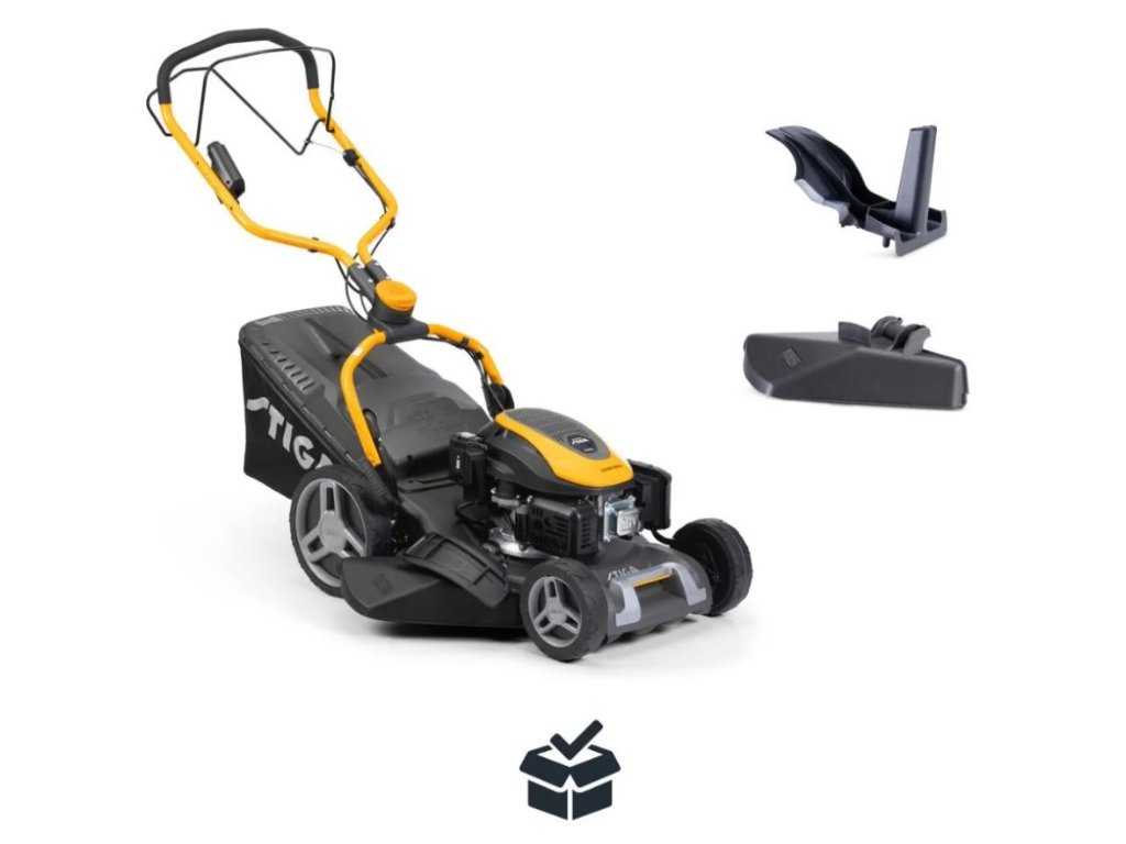 Sekačka s pojezdem STIGA Combi 48 SQ má záběr sečení 46 cm a hybridní sběrný koš o objemu 60 litrů s indikátorem naplnění koše. V ocelovém šasi je uložen spolehlivý motor STIGA o objemu 139 cm3 a čistém výkonu 2,20 kW při 2900 ot/min. Sekačka Combi 48 SQ umožňuje vybrat si ze 4 různých funkcí sečení: zadní výhoz, boční výhoz, sběr nebo mulčování, které jemně rozdrtí posečenou trávu a rozprostře ji na trávník jako přírodní hnojivo. Centrálně umístěnou výšku sečení lze snadno nastavit pomocí páky do 6 různých poloh v rozmezí od 22 do 80 mm. Velká (280 mm) zadní kola usnadňují manévrování na nerovném terénu. Boční deflektor a mulčovací záslepka jsou součástí balení.