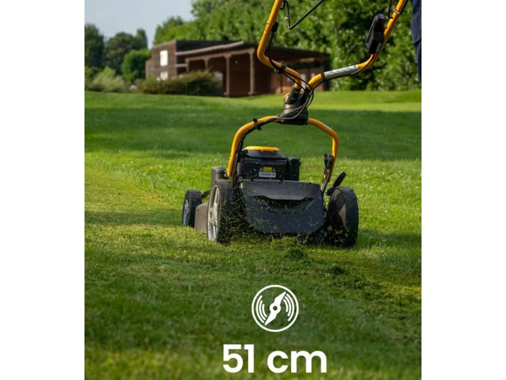 Sekačka na trávu s pojezdem STIGA Combi 753 SE má záběr sečení 51 cm a hybridní sběrný koš na trávu o objemu 60 litrů s ukazatelem naplnění. V kovovém podvozku je uložen spolehlivý motor STIGA o obsahu 166 cm3 s čistým výkonem 2,60 kW při 2900 ot/min a elektrickým startérem. Sekačka na trávu Combi 753 SE vám umožní vybrat si ze 4 různých funkcí: zadní výhoz, boční výhoz, sběr nebo mulčování, při kterém se posečená hmota jemně rozdrtí a rozprostře na zem jako hnojivo. Centrální nastavení výšky střihu umožňuje pomocí páky snadné nastavení do 5 různých poloh od 27 do 90 mm. Velká zadní 280 mm kola usnadňují manévrování na nerovném terénu. Součástí balení je boční deflektor a mulčovací vložka.