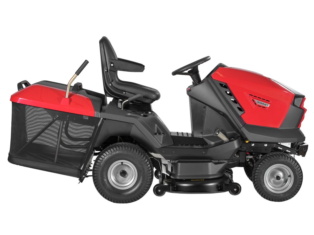 Další klíčovou výhodou tohoto modelu je profesionální hydrostatická převodovka s uzávěrkou diferenciálu a palcovými poloosami, která přidává na odolnosti a schopnosti zvládat těžký terén a náročné pracovní podmínky. Konstrukce traktoru se pyšní dvourotorovým žacím ústrojím, umístěným mezi nápravami, což zajišťuje efektivní a přesné sečení s následným sběrem trávy do velkého sběrného koše.