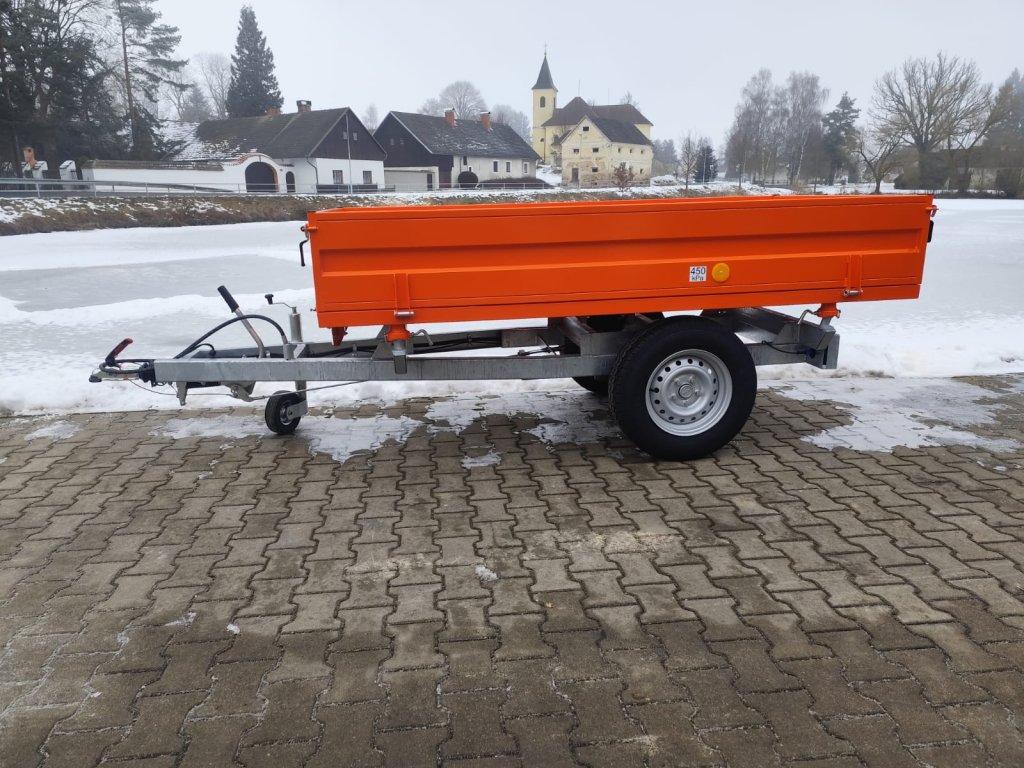 Korba přívěsu je provedena se sklopnými bočnicemi, a je sklápěna do tří stran pomocí hydraulického čtyřstupňového teleskopického zvedáku ovládaného přímo z místa řidiče. Podlaha korby je tloušťky 2mm plechu. Objem ložného prostoru je možný zvětšit montáží nadstavby korby. Brzdy jsou mechanické, ovládané nájezdovou brzdou (tažné oko průměr 40 mm nebo žehlička) a kolovými jednotkami ALKO (pneumatiky185 R14C) s couvací automatikou, což zajišťuje bezpečnou a bezporuchovou jízdu i v extrémních podmínkách. Korba je lakována práškovou barvou ve třech základních odstínech RAL - modrá, zelená, červená. Podvozek přívěsu je žárově zinkován pro zaručení korozní odolnosti. Všechny typy přívěsů jsou schváleny pro provoz na pozemních komunikacích díky homologaci. Rychlost přívěsu je stanovena pro 20km/h.