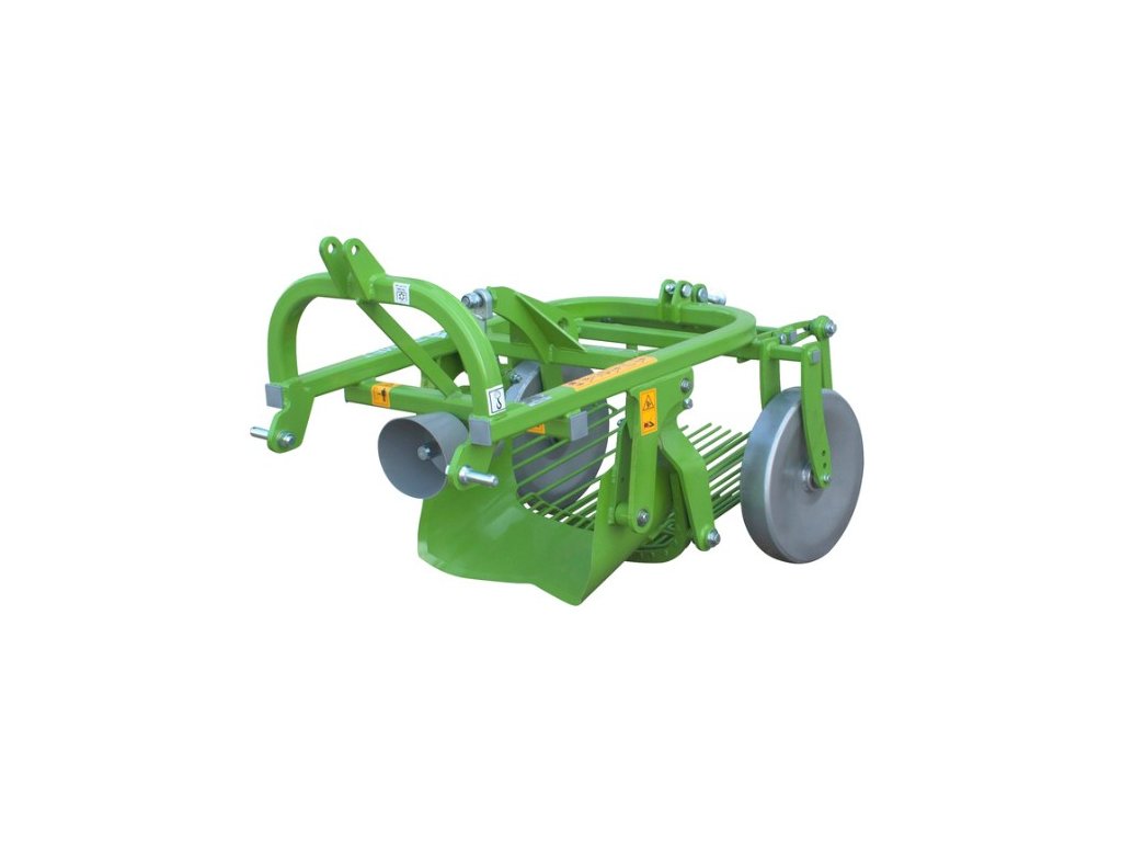 Vyorávač brambor za malotraktor se zadním výhozem, vibrační. Maximální pracovní hloubka 200mm. Váha stroje 135kg. Potřebný výkon traktoru min 7,5kw.Pohon kardanem.
