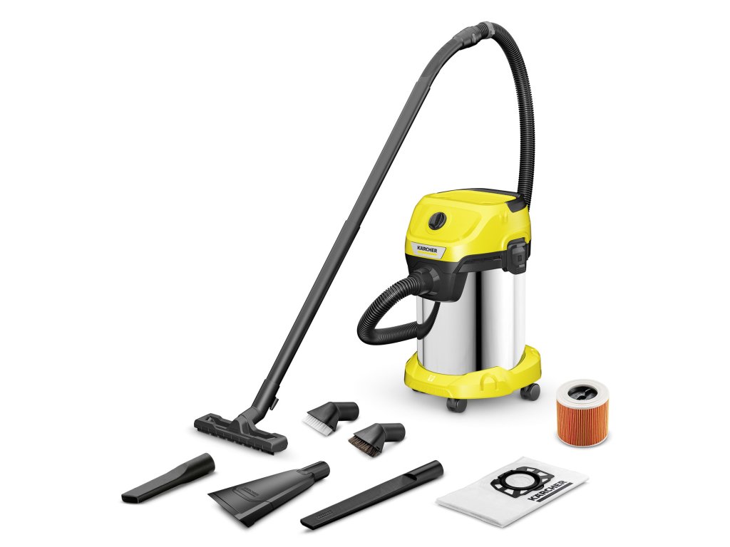 Univerzální vysavač na mokré a suché vysávání WD 3 S V-17/6/20 Car je super výkonný, energeticky účinný a kompaktní – se spotřebou pouze 1000 W. Vysavač je vybaven hubicí do auta, extra dlouhou štěrbinovou hubicí a sacím kartáčem s měkkými a tvrdými štětinami. Díky dodávaným speciálním kartáčům a hubicím lze bez problémů kvalitně vyčistit každou část uvnitř vozidla. Ať už se jedná o citlivé povrchy, jako je palubní deska, silně znečištěná místa, jako je prostor pro nohy, velké plochy v zavazadlovém prostoru nebo úzké prostory mezi sedadly Odnímatelná rukojeť umožňuje připojení kartáčů a hubic přímo k sací hadici a umožňuje tak práci v užších prostorech. Vysavač je vybaven robustní a nárazuvzdornou nádobou z nerezové oceli o objemu 17 l, 6 m kabelem a 2 m sací hadicí s odnímatelnou rukojetí, podlahovou hubicí Clips, štěrbinovou hubicí, kartušovým filtrem a fleecovým filtračním sáčkem. Na spodní straně sací hlavy je umístěna filtrační patrona na filtrování nečistot, uvnitř které je mechanický plovák, jenž při maximálním množství kapaliny přeruší saní a nádoba se tak nemůže přeplnit. Filtrační patrona umožňuje vysávání suchých a mokrých nečistot bez výměny filtru. Příslušenství lze uložit bezpečně na vysavač a je tak v případě potřeby okamžitě k dispozici. Na praktickou odkládací plochu na vrchní části hlavy vysavače lze odložit např. nářadí. Snadné přenášení stroje díky ergonomickému madlu. Hlavní výhody: Praktická úschova kabelů a příslušenství - Prostorově úsporné, bezpečné a snadno dostupné úložiště příslušenství.- Napájecí kabel lze bezpečně uložit pomocí integrovaných kabelových háčků. Uložení sací hadice na hlavě zařízení - Sací hadici lze prostorově úsporně skladovat zavěšením na hlavu přístroje. - Intuitivní zabezpečovací mechanismy pro leváky i praváky. Odkládací prostor - Pro bezpečné odkládání nářadí a malých dílů, jako jsou šrouby nebo hřebíky. Praktická funkce fukaru - Všude tam, kde vysávání není možné, pomůže praktická funkce fukaru.- Odstraňování nečistot bez námahy, např. i ze štěrkového lože. Vliesový filtrační sáček - Třívrstvý vliesový materiál extrémně odolný proti roztržen - Pro dlouhotrvající sací výkon a vynikající zadržování prachu. Parkovací poloha na rukojeti - Parkovací poloha pro sací hadci přímo na rukojeti vysavače - pro rychlé uchycení bez přerušení práce.Doplňkové parametry