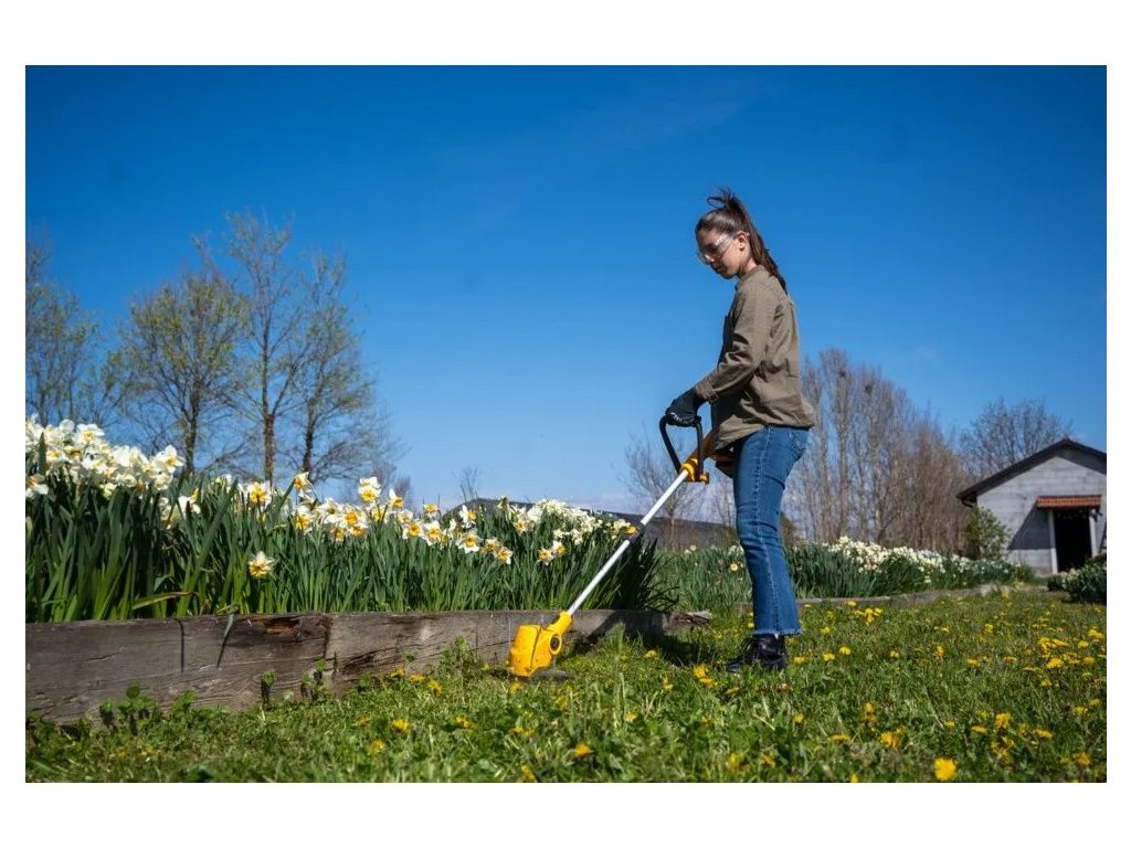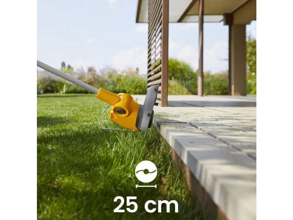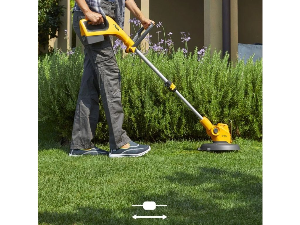 S bateriovým vyžínačem na trávu GT 100e Kit je obsekávání a lemování trávníku radostí. Tento vyžínač je vybaven výkonným motorem, optimálně vyváženou baterií 20 V 2 Ah a ergonomickou rukojetí s měkkým polstrem. Jeho automatické vysouvání struny, vám poskytne spolehlivé a nepřerušované sekání, zatímco plně nastavitelná rukojeť ve tvaru smyčky vám umožní manévrování bez namáhání. Pro vaše úplné pohodlí můžete také nastavit teleskopickou hřídel GT 100e Kit podle vaší výšky. Jedním zmáčknutím jde přepnout z režimu obsekávání do režimu lemování okrajů trávníku. Jeho otočná hlava až do 45 °, vám také poskytne dokonalé sekání. Distanční držák umožňuje dokonalé obsekávání kolem rostlin a jiných předmětů.