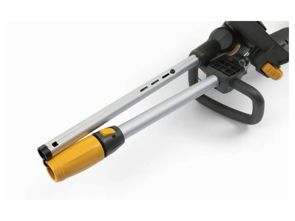 Akumulátorový vyžínač GT 500e je dostatečně výkonný, aby zvládl veškeré vaše dosekávání a prakticky nastavitelný, aby váš trávník přesně olemoval. Díky baterii 48V 2Ah vám GT 500e poskytne výdrž až 20 minut na jedno nabití a díky jednomu rychlému otočení vám jeho hlava umožňuje snadné nastavení až o 90 °. Pro dokonalé svisle řezané okraje trávníku stačí otočit žací hlavu o 90 ° a užít si výsledky. Jeho vysoce výkonná funkce automatického podávání struny zajišťuje nepřerušované a snadné dosekávání. A můžete nastavit přední rukojeť a teleskopický hřídel do nejpohodlnější pracovní polohy. Začít je snadné - stačí stisknout tlačítko zapnutí / vypnutí na ovladači rukojeti a můžete vyrazit pracovat. Poté, když je vše uklizené, můžete hřídel rozdělit na dvě části pro snadné a prostorově úsporné skladování.